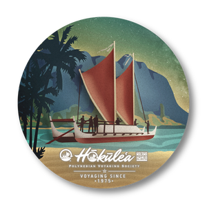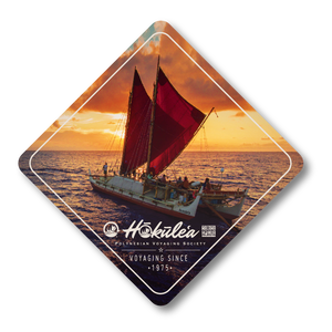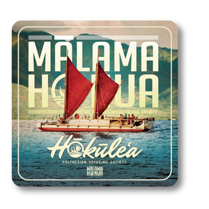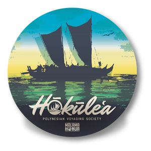 Help us celebrate Hōkūleʻa, Hikianalia and Mālama Honua with these colorful hand-illustrated stickers perfect for your car, canteen and everywhere else. These versatile stickers come with back liners cut to the size and shape of the sticker. Printed in full color on white polypropylene with outdoor durable glossy laminate.